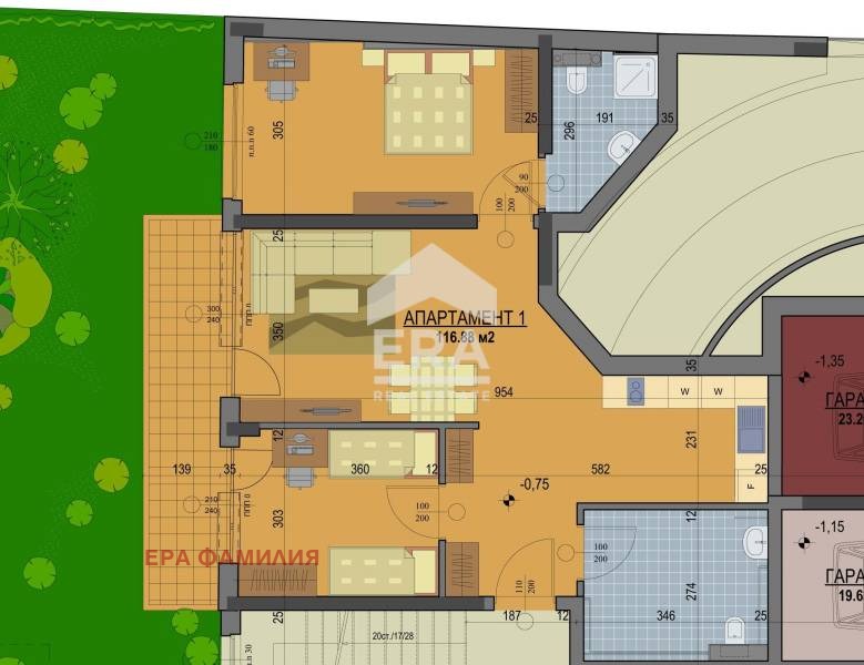 Предвиден двоен гараж номер 4 - 31.18 кв.м. който може да се закупи отделно на цена 79 000 Евро.