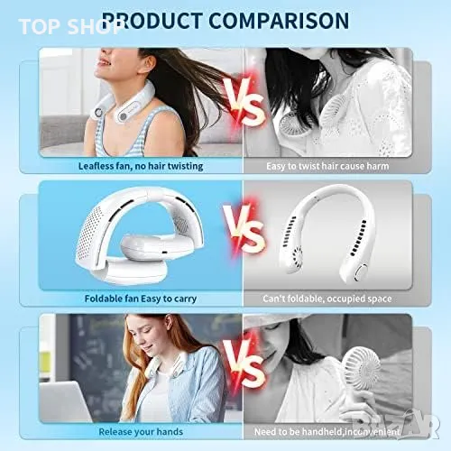 Нов 360° Охлаждащ Вентилатор Grarg за Врат, 3 Скорости, USB 4000mAh → Обява 49927500
