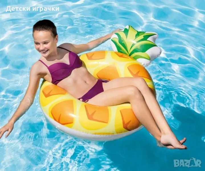 Име: Детски надуваем пояс Intex, Ананасов дизайн, 117 х 86 см, PVC, жълт