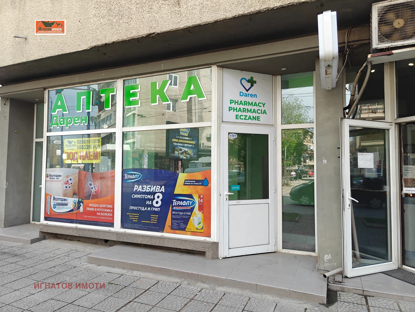 Предлагаме под наем помещение в центъра на главна улица в близост до СЪДА, градската градина. Подходящо за магазин, аптека, офис и др. Има два склада с два санитарни възела. Има климатик.