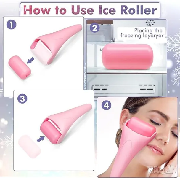 Този леден ролер помага за подобряване на кръвообращението, намаляване на подпухналостта, успокояване на кожата и минимизиране на появата на фини линии и тъмни кръгове. Той стяга порите, успокоява зачервяването и подпомага усвояването на хранителни вещества, когато се използва с продукти за грижа за кожата. Идеален за облекчаване на умората, облекчаване на напрежението и осигуряване на охлаждащо облекчение при мигрена, слънчево изгаряне или леки наранявания, оставя кожата да изглежда освежена, повдигната и естествено сияйна.