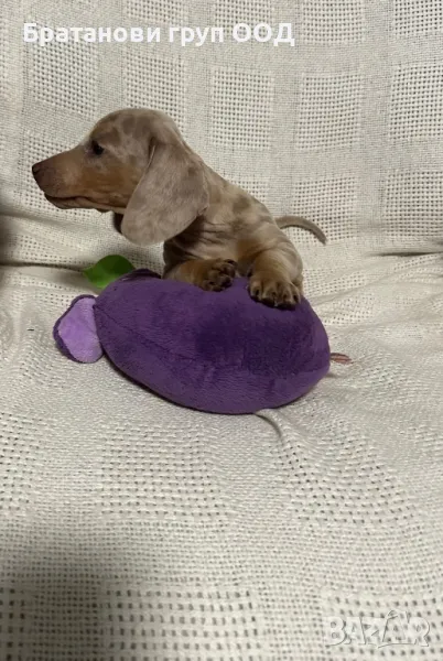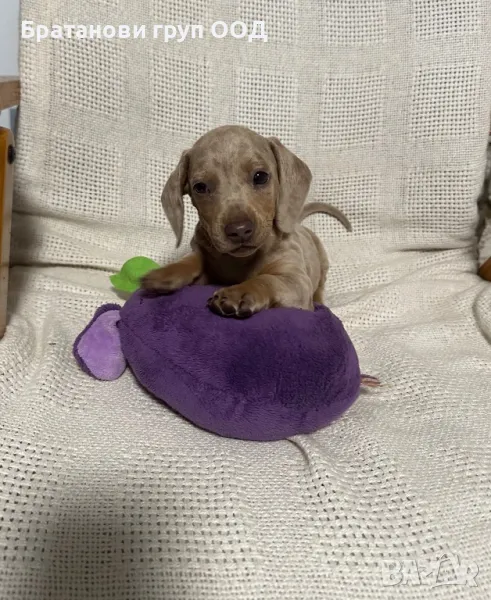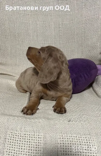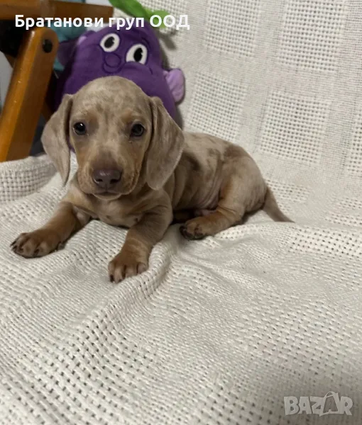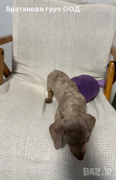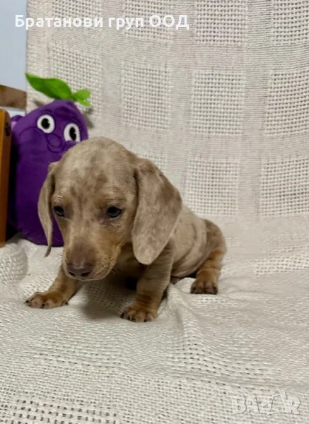 Свободно за продажба мъжко кученце от породата Дакел от рядката разцветка Изабела мерле,в момента е на два месеца и има направени всички необходими за възрастта си имунизации..За допълнителна информация на посочения телефон.