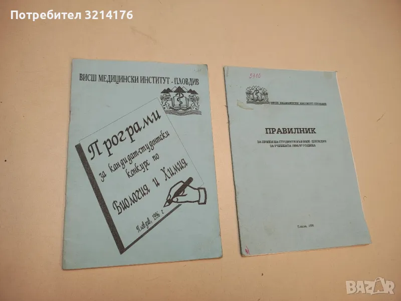 Програми за кандидат-студентски конкурс по Биология и Химия – Колектив 19лв. (1996, ВМИ – Пловдив)