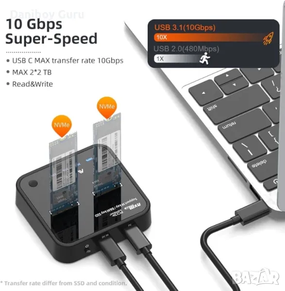 ВИСОКА СКОРОСТ: USB 3.0 Gen1 поддържа до 5Gbps. Външната докинг станция за твърд диск е оборудвана с USB C към C кабел, A към C кабел и 5V-3A захранващ адаптер.