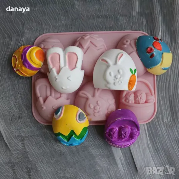 Формата разполага с 6 различни гнезда с тематични великденски форми на шарени яйца и великденско зайче. Всеки детайл е прецизно изработен, което гарантира красив и ясен отпечатък при всяко използване.