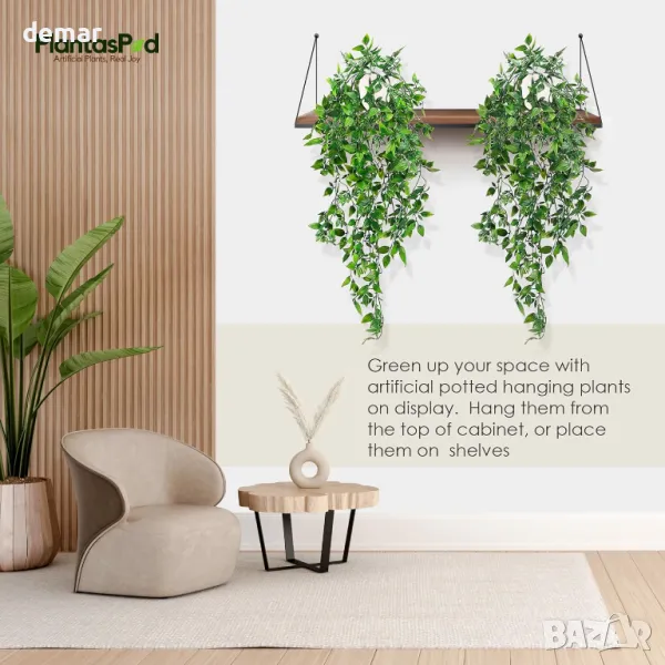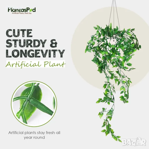 PLANTASPOD Изкуствени висящи растения със саксии (2 броя)