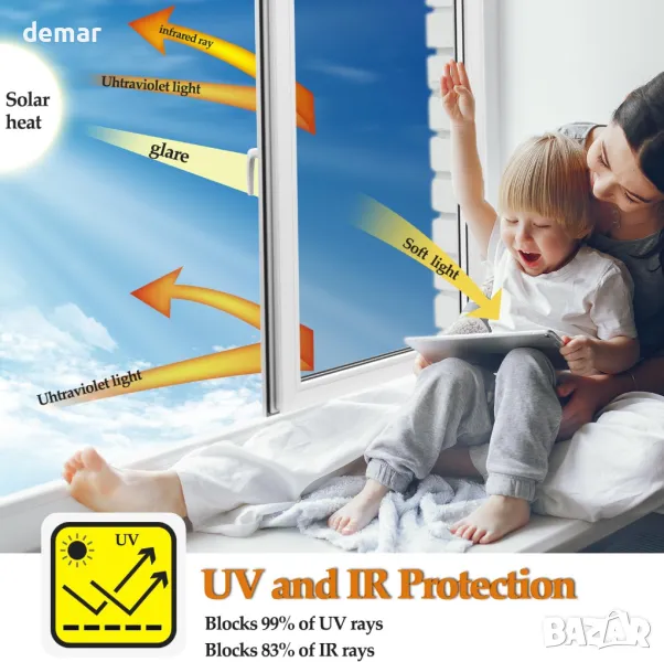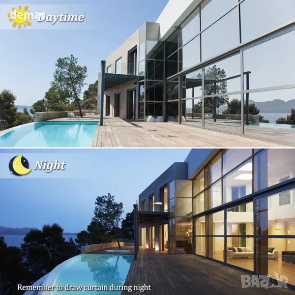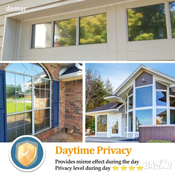 Това отразяващо фолио за прозорци помага за регулиране на вътрешната температура, като намалява топлината през лятото и задържа топлината през зимата. То блокира 99% от UV и 85% от инфрачервените лъчи, предпазвайки кожата и обзавеждането, като същевременно позволява мека естествена светлина и намалява отблясъците. Статичният прилепващ дизайн е лесен за поставяне с включените инструменти и не оставя следи след отстраняване. То предлага еднопосочна поверителност през деня чрез огледален ефект, въпреки че през нощта са необходими завеси. Подходящо за гладки стъклени повърхности в различни условия, но не е идеално за изложени на слънце прозорци с двоен стъклопакет.