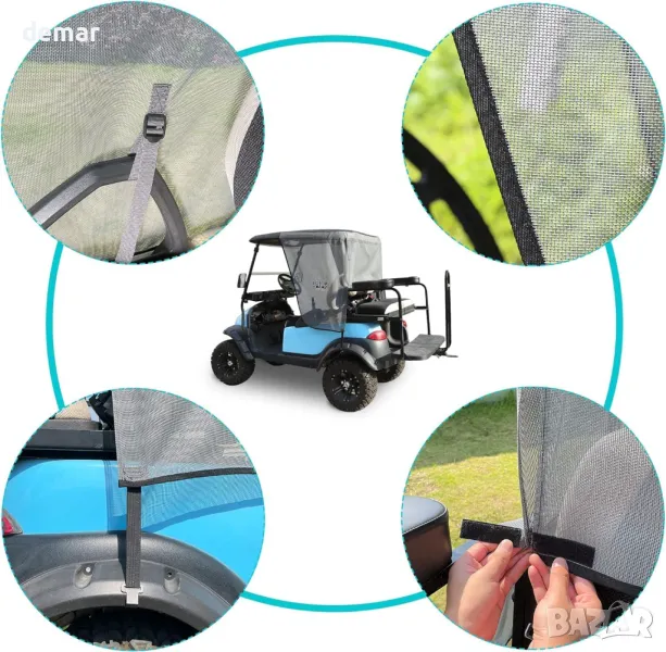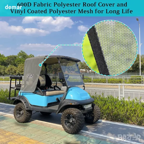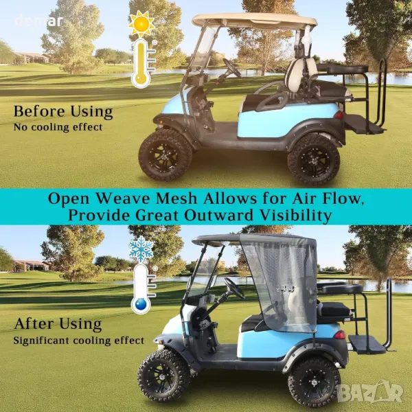 Изработен от издръжлив мрежест материал, този сгъваем сенник предлага надеждна защита от топлина, вятър и слънце, като ви помага да се охлаждате и да избегнете слънчево изгаряне, докато шофирате или играете голф. Неговият дизайн с отворена тъкан позволява въздушен поток, без да възпрепятства влизането или излизането, и добавя елегантен вид на вашата количка. Специално проектиран да пасне на моделите Club Car Precedent и EZGO TXT за 2 пътници (не е съвместим с DS, RXV или Yamaha), той се монтира лесно без инструменти или модификации на превозното средство. Идеален за горещ климат, той прави забележима разлика в комфорта на игрището.