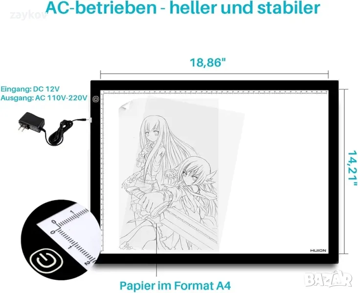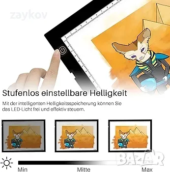Широки приложения Страхотни за 2D анимация, шаблониране, калиграфия, щамповане, прехвърляне на татуировки, скициране, рисуване, проекти за шиене, витражи, капитониране, гледане на рентгенови лъчи и т.н. LED подложката е подходяща за всеки, независимо дали сте запален любител или професионален художник. Защитената от очите технология е идеална за скициране, рисуване, анимация, калиграфия и проследяване на татуировки.