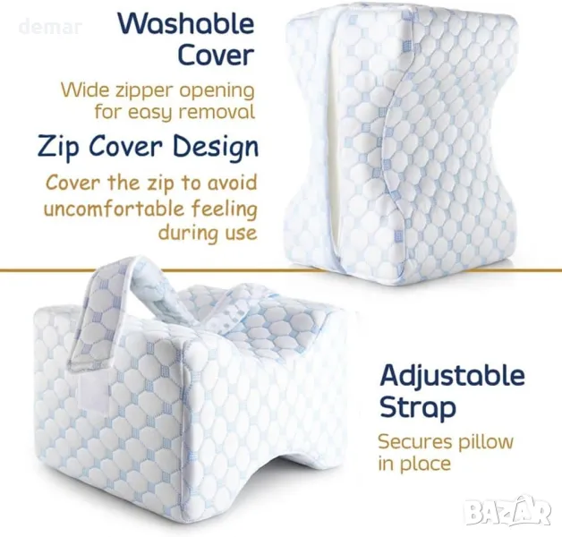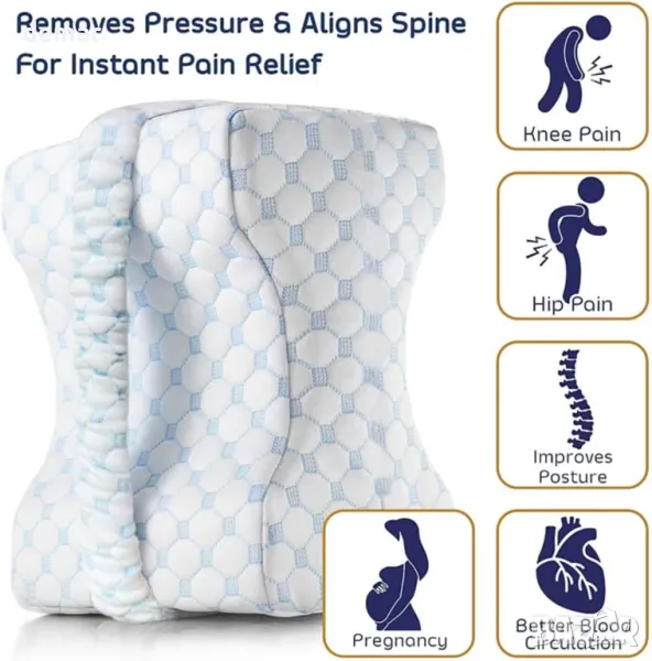 Проектирана с лекарски съвет, тази ергономично оформена възглавница поддържа правилното подравняване на гръбначния стълб, тазобедрената става и краката, за да облекчи дискомфорта от ишиас, дискови разклонения, болки в тазобедрената става, бременност или следоперативно възстановяване. Нейната мемори пяна с висока плътност запазва формата си през цялата нощ, докато дишащият калъф, който може да се пере в пералня, поддържа краката хладни и удобни. Сваляща се еластична лента гарантира, че тя остава на мястото си, докато спите, предотвратявайки нейното изместване. Идеална за подобряване на кръвообращението, стойката и цялостното качество на съня.