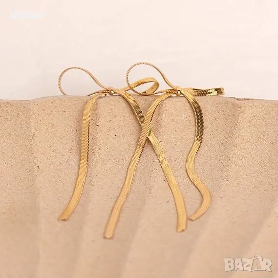 Обеци Siribelle със златна панделка - модни елегантни дълги обеци за чувствителни уши