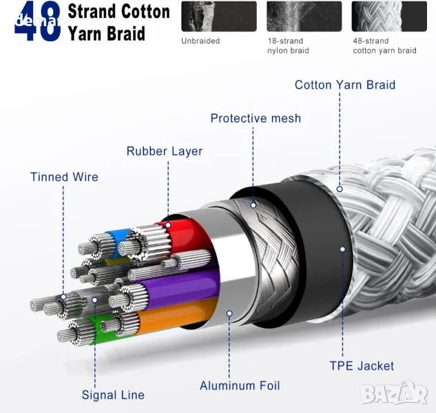 Включва два 0,9-метрови USB-C към USB-C кабела, идеални за дома, работата или пътуването, поддържащи бързо зареждане до 60 W със защита от презареждане и ток. Позволява бързо зареждане (напр. iPhone 16/15 до 88% за 35 минути) и 480 Mbps трансфер на данни. Изработен от издръжлив, не заплитащ се плетен материал, тестван за над 50 000 огъвания и висока устойчивост на натоварване. Многослойното екраниране осигурява стабилно и безопасно зареждане по време на употреба, включително през нощта. Широко съвместим с широка гама от USB-C устройства, включително различни модели iPhone, Samsung, Pixel, MacBooks и други лаптопи, таблети и смартфони.