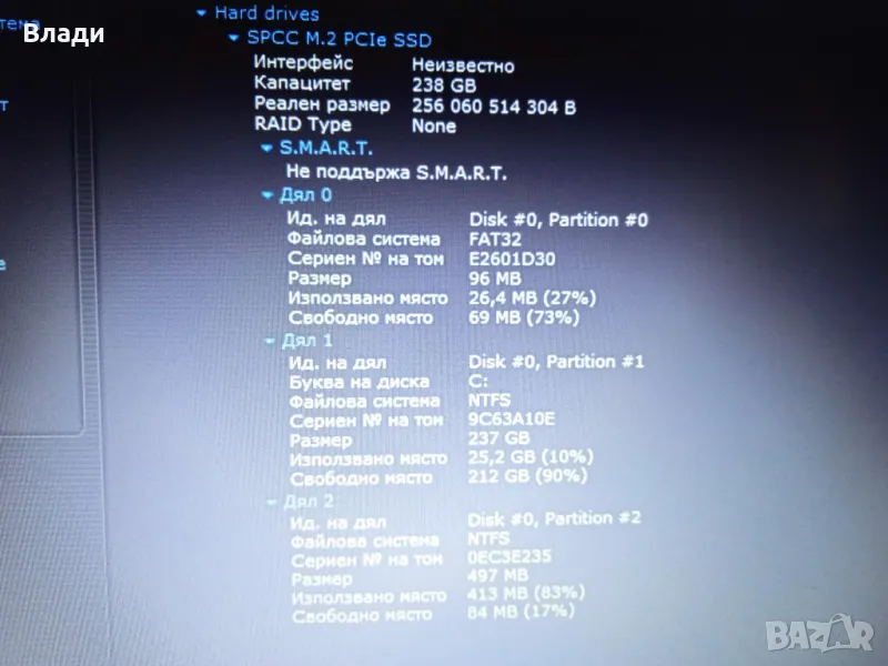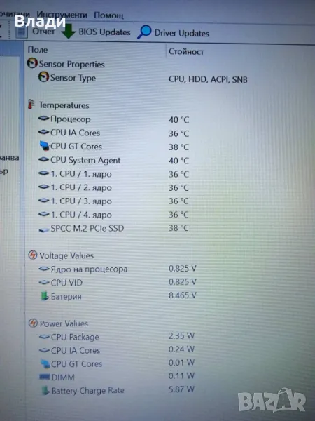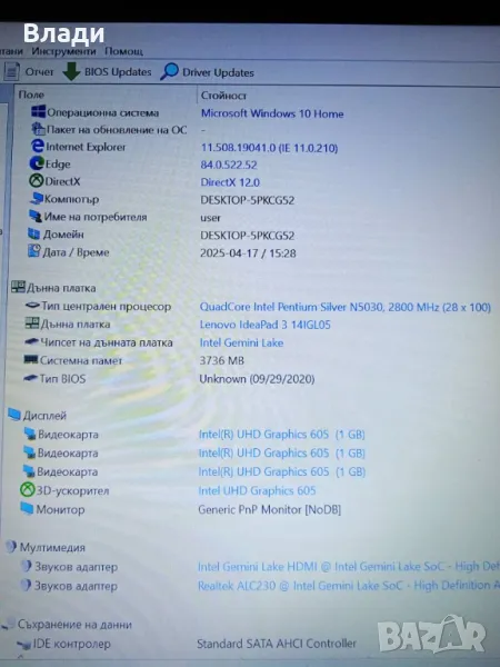 Инсталиран с Windows 10 Home 64 bit,Speccy и Aida 64,за да се тества преди да се плати.