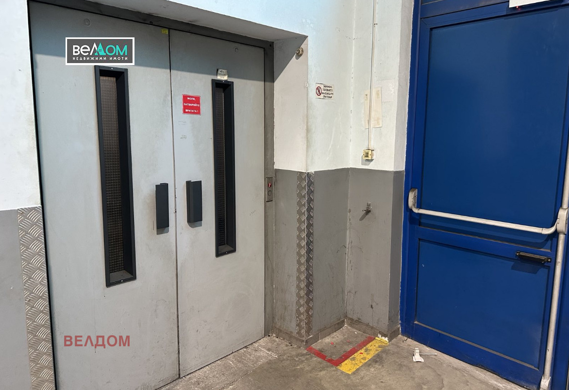 - 2. Вариант: Горно, второ ниво (над първо), + 1460 м2, също шлайфан бетон. Връзка-2 товарни асансьорни платформи с полезна товароносимост 1 тон, стълбище и пътнически асансьор за 4 човека.
