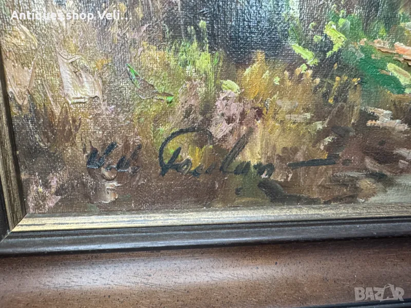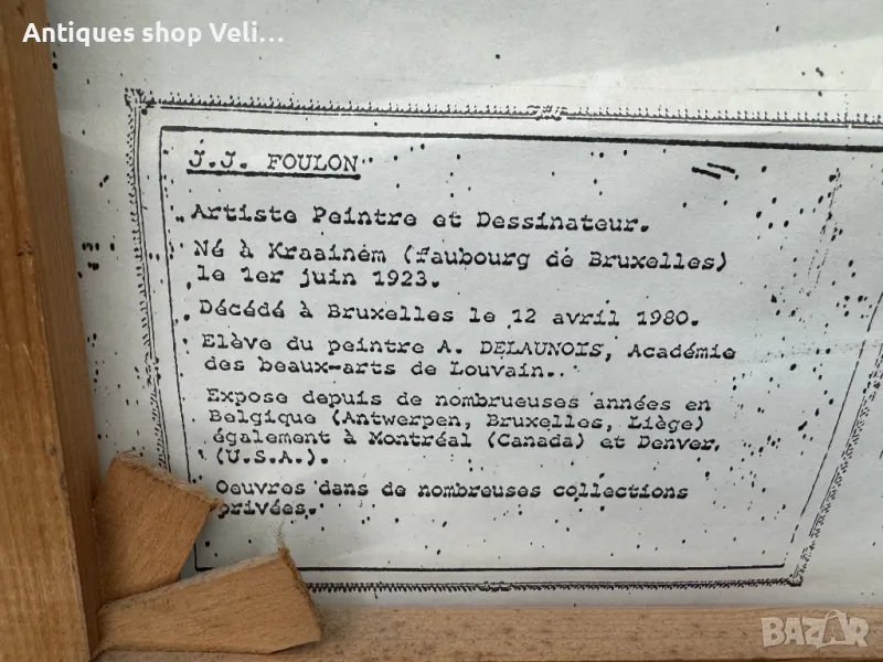 Прекрасна авторска картина-пейзаж рисуван върху платно с маслени бои от известният белгийски художник Jean-Jacques Foulon. Доро състояние, видно от снимките. Предлагаме доставка с Еконт и лично предаване за градовете Велико Търново, Русе и Сливен Размери-76/66см.