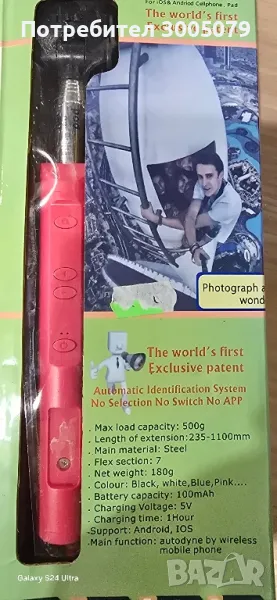 Продавам селфи стик със зареждане, и вградена батерия. Някоя дама ще се радва на красиви селфи снимки.