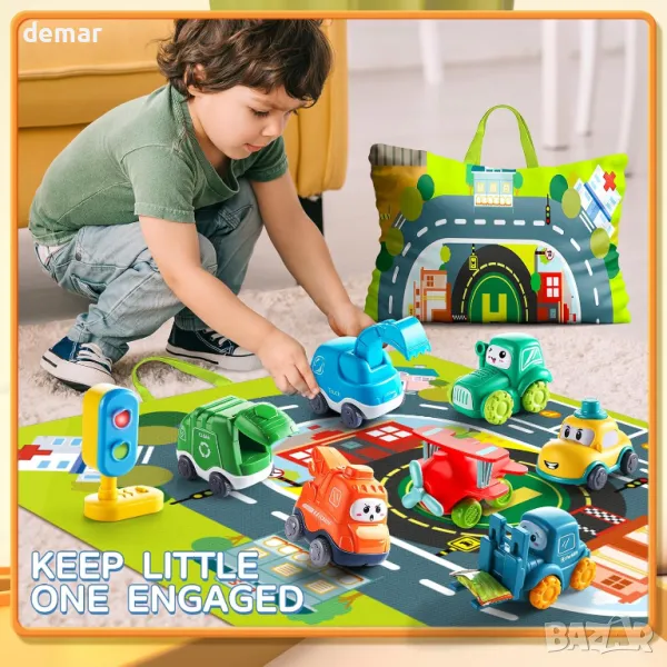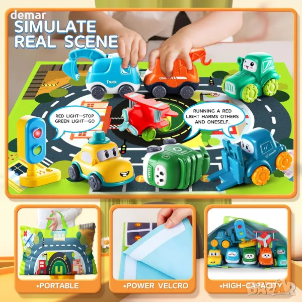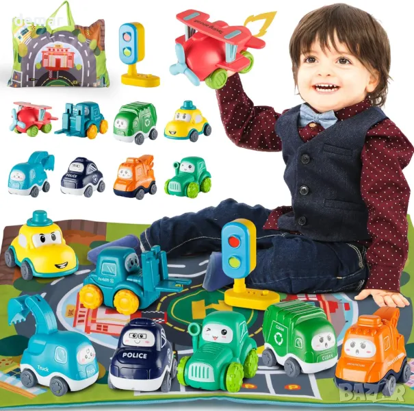 7 превозни средства с карта и светофар, за деца 1-2 години