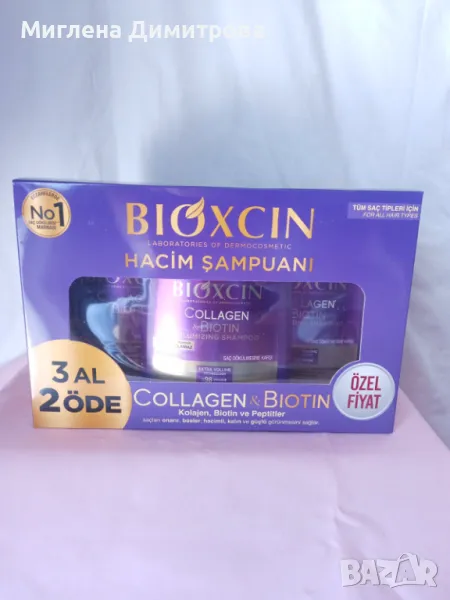 Комплект от 3 броя биоксин шампоан за обем и косопад с колаген и биотин