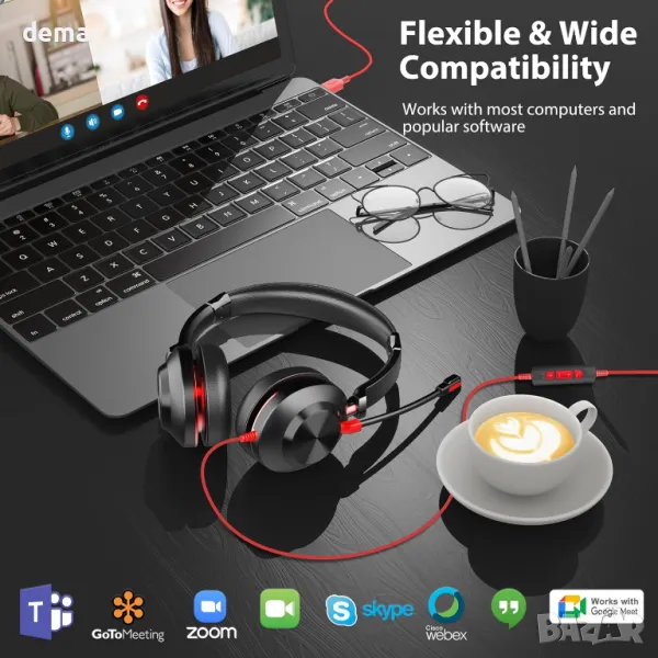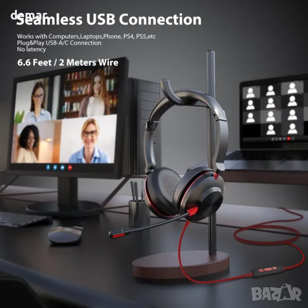 Проектирани за работа и разговори, тези кабелни слушалки разполагат с двойни шумопотискащи микрофони, които блокират околния шум за ясно улавяне на гласа, дори в натоварена среда. Въртящият се микрофон и LED индикаторът за повиквания подобряват използваемостта, а вградените контроли ви позволяват лесно да управлявате силата на звука, заглушаването и повикванията. Съвместими с USB-A и USB-C, те поддържат широка гама от устройства и платформи за конференции, включително Teams, Zoom и Skype. Леката конструкция с наушници от мемори пяна осигуряват дълготраен комфорт, а подсилената лента за глава добавя издръжливост.