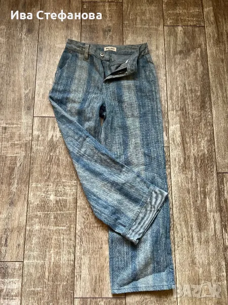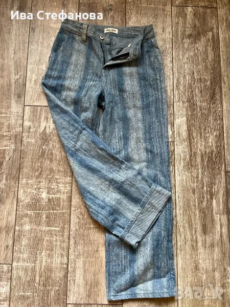 Нови елегантни светло сини дънкови дънкени панталони висока талия дънки Miu Miu . Размер М ще станат и за S . Дължина 104 см с възможност да си подвият , талия 69 см до 70 см .Разгледайте и другите ми обяви .
