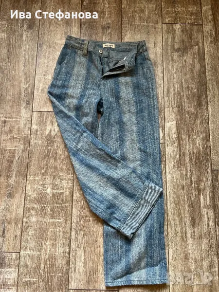 Нови елегантни светло сини дънкови дънкени панталони висока талия дънки Miu Miu . Размер М ще станат и за S . Дължина 104 см с възможност да си подвият , талия 69 см до 70 см .Разгледайте и другите ми обяви .