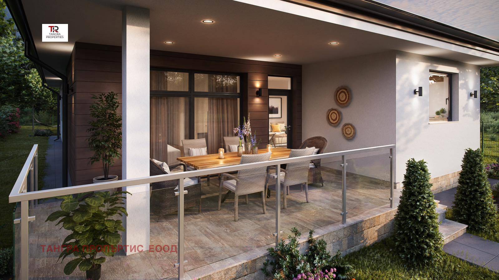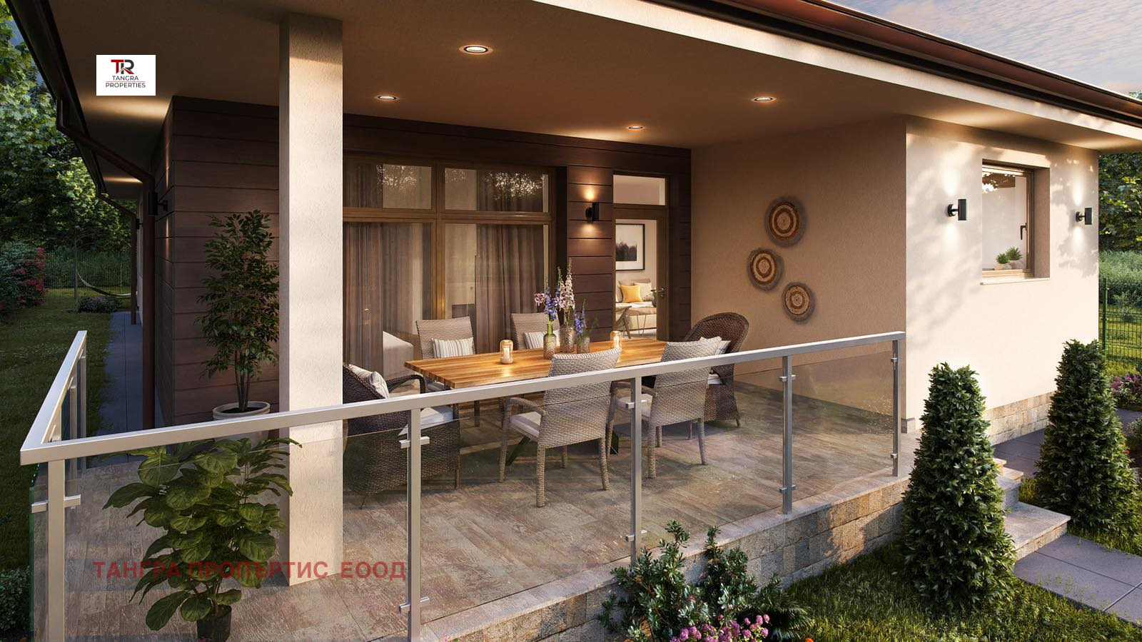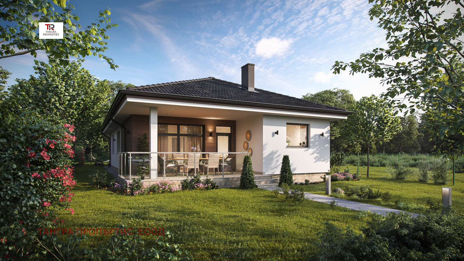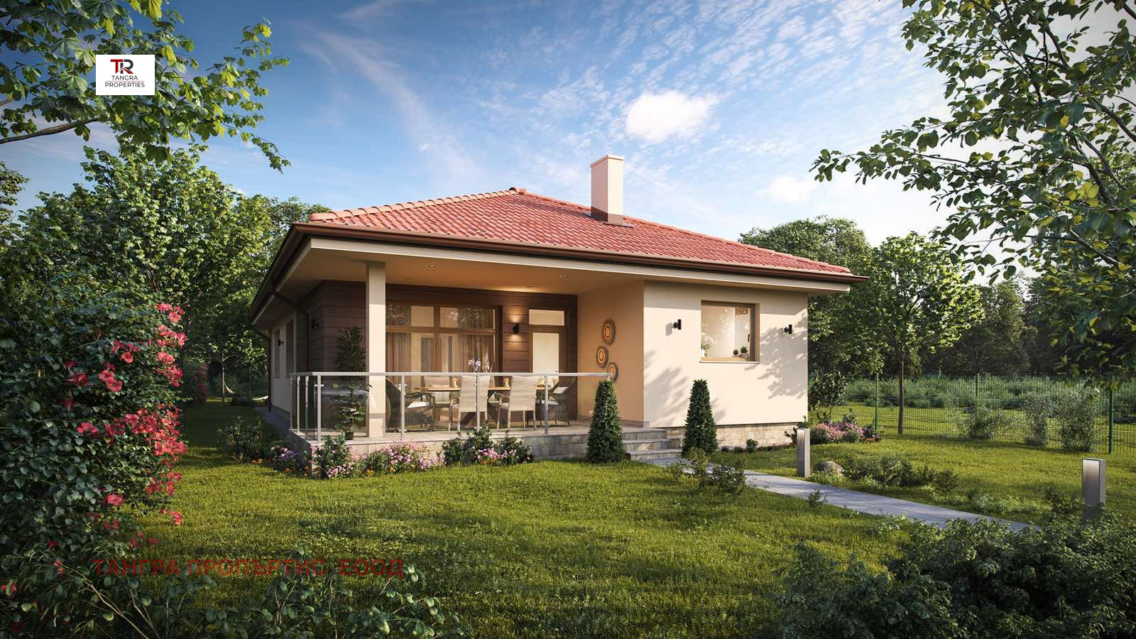 Парцела ще бъде ограден и озеленен. Къщата ще бъде изградена изцяло с висококачествени материали.