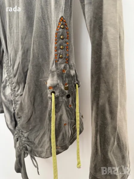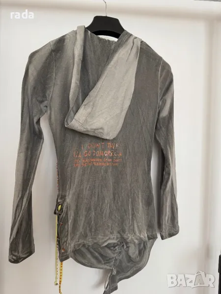 Асиметричен суичър с качулка, размер С/М, дължина 70 см, ширина под мишници 40 см, еластична, нов без етикет
