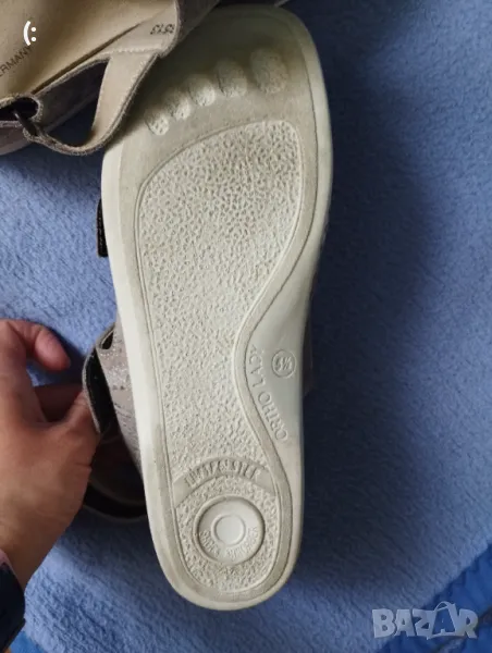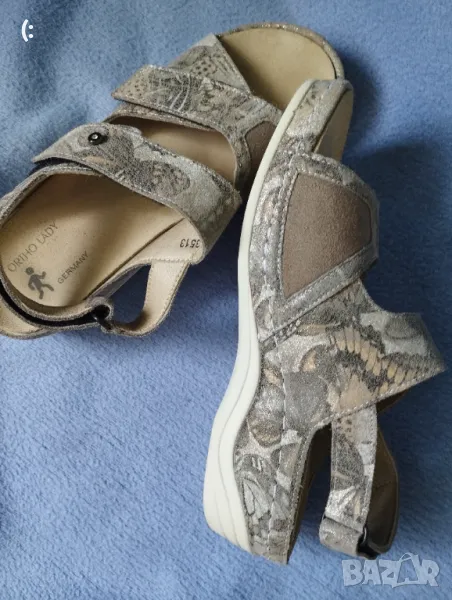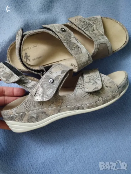 Сандалите са в отлично състояние.Обувани са един,два пъти.Изработени са от мека естествена кожа.Много комфортни и удобни.Стилни и практични.Анатомична подметка.Номер 38 с дължина на стелката 24,5см. Цена 50лв.