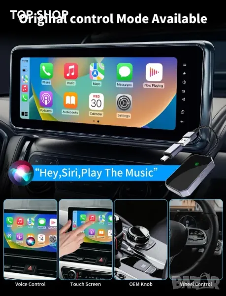 Ключови думи: Безжичен адаптер, Carplay, iPhone, автомобил, навигация, музика, Siri, безжичен, plug-and-play, Aurevita.