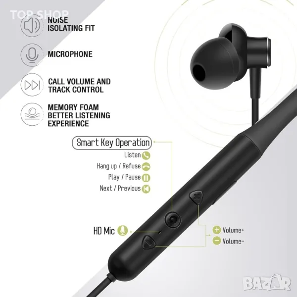 Bluetooth слушалки с лента за врат AzukiLife с впечатляващ звук, безжични слушалки