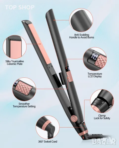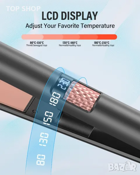 Преса за коса, турмалинова керамична LCD дисплей, регулируема температура