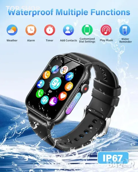 Смарт часовник за Android/IOS, фитнес тракер, отговор/осъществяване на повикване, водоустойчив-черен