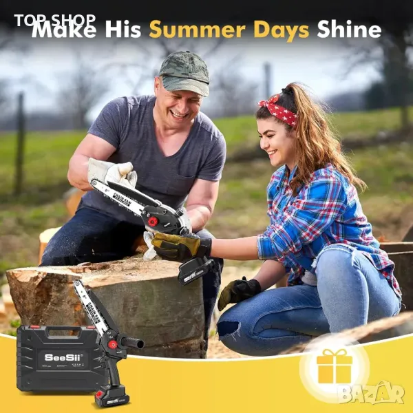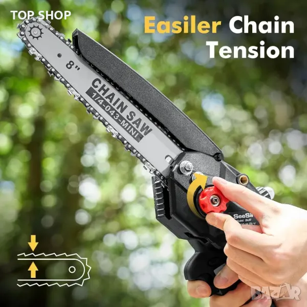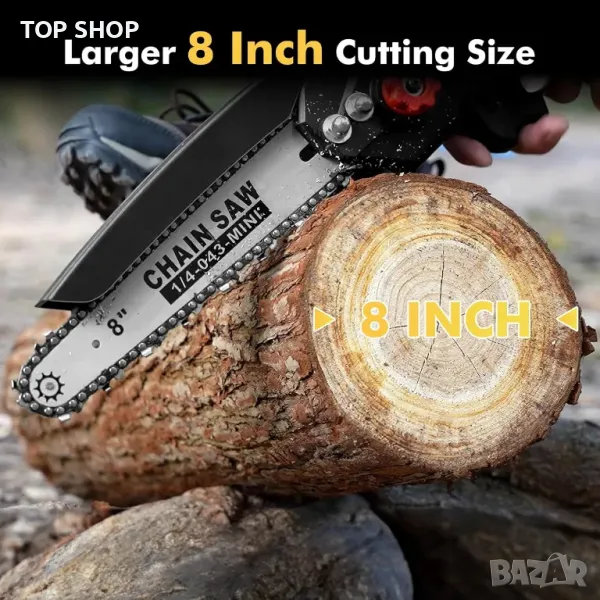 Мини верижен трион Seesii 8 инча, с автоматично масло, 2 бр. 2000mAh батерии