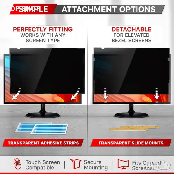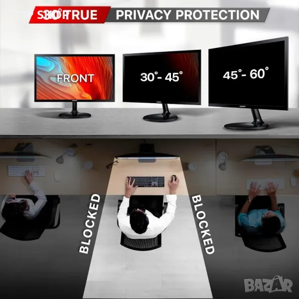 Компютърният екран за поверителност на Vintez е съвместим с раздел 889 и TAA, предоставяйки първокласни решения за поверителност за физически лица, малки фирми, корпорации, правителство и образователни институции. Той гарантира съответствието и сигурността на данните за потребителите в обществени зони и зони с голям трафик, с регулируема яркост, за да променя ъглите на поверителност. Проектиран за екрани с ширина 20 15/16" (20,9 инча/532 мм) и височина 11 13/16" (11,8 инча/299 мм) със съотношение на страните 16:9, той пасва на всички основни марки. Този екранен филтър против отблясъци също предпазва от надраскване и намалява напрежението на очите. Пакетът включва два филтърни екрана за поверителност, ленти за закрепване, плъзгащи се пластини, допълнителни комплекти за инсталиране и капак за уеб камера.