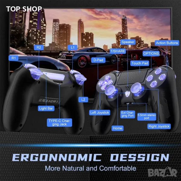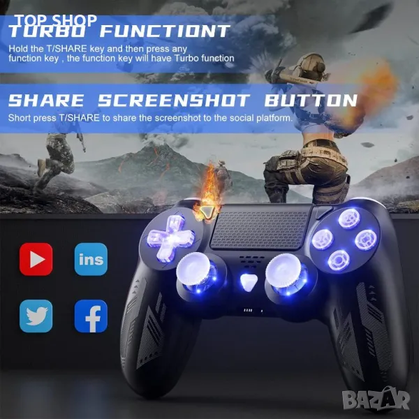 Безжичен контролер Bonacell за геймпад за Ps4 с 6-осен сензор за движение Turbo Touch Pad