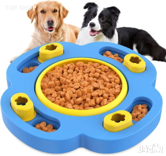 RUXAN Купа за кучета за бавно хранене, играчка пъзел, синьо