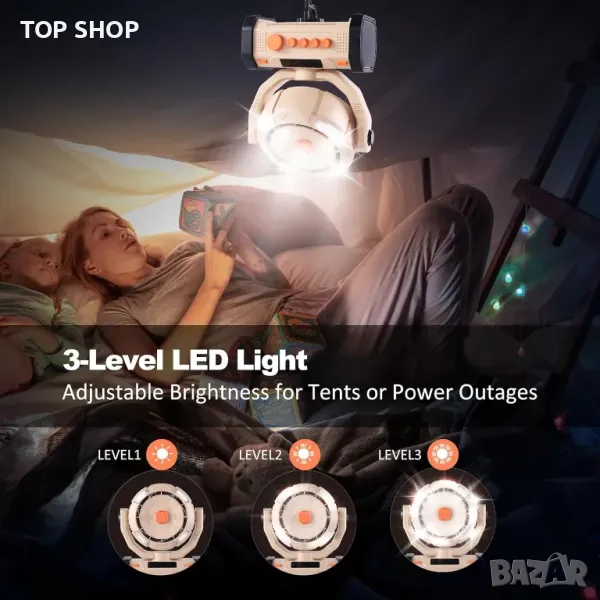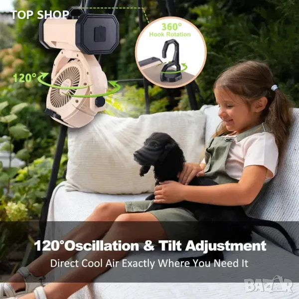 Вентилатор за къмпинг TREKOLOGY с 20000mAh батерия и Power Bank, 120° осцилация, LED светлина