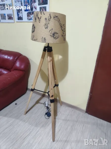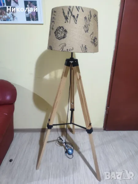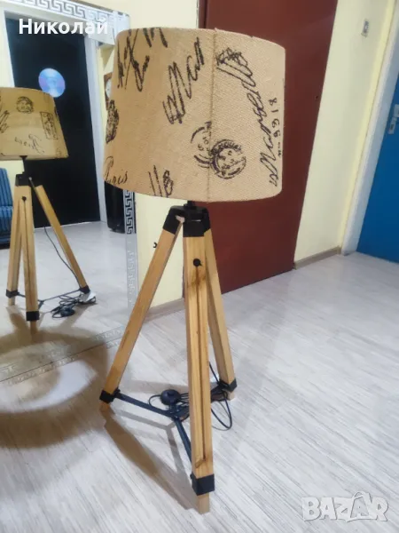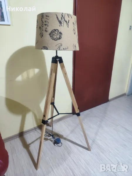 абажур.Трипода е от естествено дърво.