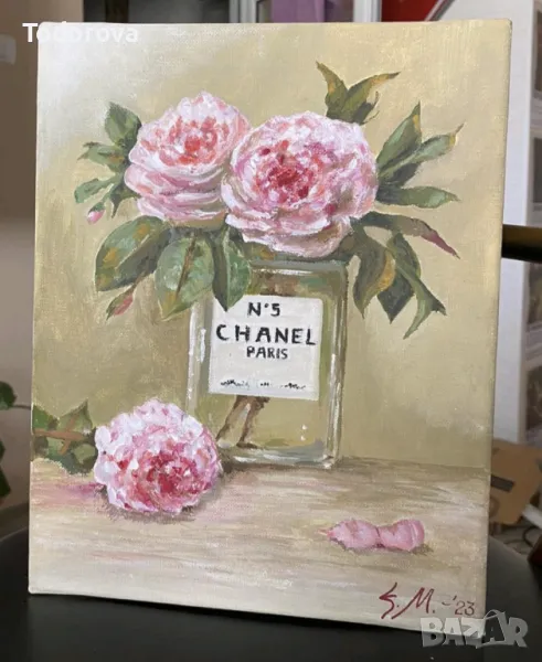 1) Голо тяло със златно фолио - графика - размер 50 см/ 34 см, цена 80 лв. 2) Шанел № 5 Темперни бои - размер 30/ 24 см - цена 100 лв. и