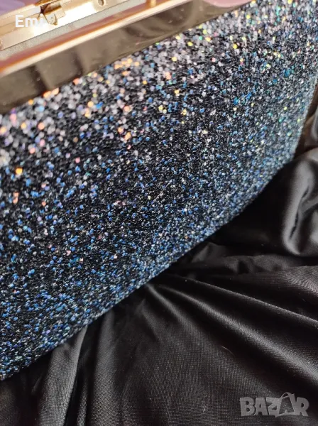 Продавам красива бална чантичка в черно, обсипана с пайети. Светлината се пречупва в тях и ги кара да блестят в различни цветове, което прави чантичката подходяща за най-различни елегантни тоалети. Вътре има две мини джобчета и достатъчно място за най-важните принадлежности. Чисто нова, никога не е носена.Бъди неотразима в специалният си ден и звездата на бляскавото парти!Размери: 20 х 14 см