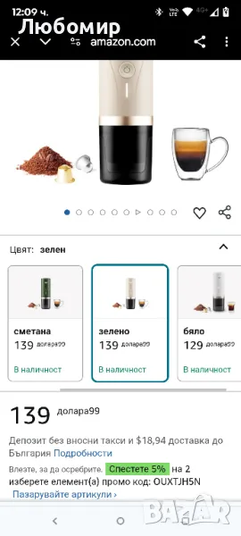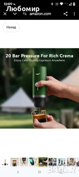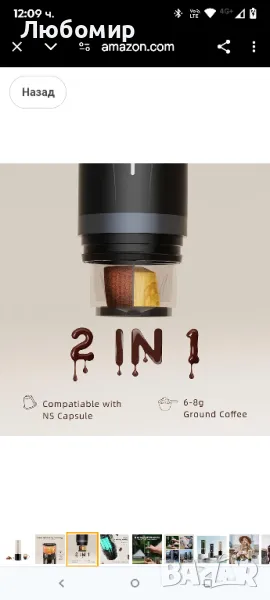 Преносима машина за еспресо CERA+, самонагряваща се електрическа мини кафе машина, 20 бара налягане, съвместима с NS капсули и фино смилане за пътуване, къмпинг, туризъм (крем).Еспресо с качество на кафене, по всяко време и навсякъде: Пренесете играта си с кафе на следващото ниво с преносимата машина за еспресо CERA+! Независимо дали сте у дома, на пътешествие или разглеждате природата, тази модернизирана машина за еспресо доставя еспресо с качество на кафене само с едно докосване. Неговият иновативен дизайн включва автоматично нагряване на водата и повдигаща се чаша за кафе (2,9"), което го прави най-добрият спътник за пътуване, къмпинг, туризъм и ежедневни приключения. Никога повече не се задоволявайте с посредствено кафе!Светкавично нагряване, перфектна пяна всеки път: Защо да чакате страхотно кафе? Благодарение на патентованата керамична технология за нагряване, CERA+ загрява водата до идеалната температура за варене от 201°F само за 3-4 минути. В комбинация с налягане от 20 BAR, той извлича богата, кадифена пяна, която съперничи на любимото ви кафене. Независимо дали сте зает професионалист или ентусиаст на открито, насладете се на еспресо на ниво бариста за минути – без компромиси.Мощност, която е в крак с начина ви на живот: Проектиран за живот в движение, CERA+ се захранва от батерия с голям капацитет, която приготвя 4-5 чаши еспресо със студена вода или 2-3 чаши с гореща вода. Нуждаете се от повече? Добавете гореща вода и източете над 200 чаши с едно зареждане! Плюс това, с поддръжка на 12V/24V зареждане за кола и възможност за зареждане от преносима захранваща банка, можете да поддържате кафето си течно по време на пътувания, къмпинг или дълги пътувания. Готов за приключения и създаден да бъде в крак с натоварения ви живот.Компактен, херметичен и готов за пътуване: С тегло само 1,41 lbs и приблизително с размерите на бутилка вода, CERA+ е най-добрият спътник при пътуване. Неговият непропусклив, водоустойчив и изолиран дизайн гарантира безпроблемно варене, където и да сте. Перфектен за ентусиасти на открито, пътуващи до работното място или всеки, който отказва да пожертва страхотно кафе за удобство. Поставете го в чантата си и вземете вашето еспресо навсякъде!Гъвкавост на кафето 2 в 1: Вашият начин, всеки ден: Харесвате ли опции? CERA+ ви покрива! Пригответе любимото си еспресо с помощта на смляно кафе или кафе на капсули (съвместимо с Nespresso, Starbucks, Lavazza и други). Независимо дали предпочитате варене с топла или студена вода, тази машина осигурява постоянни, вкусни резултати всеки път. Това е най-добрата машина за еспресо за любителите на кафето, които жадуват за разнообразие и удобство.