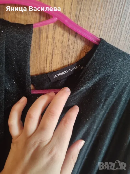 Черна брокатена дълга официална рокля с коланче → Обява 49940049