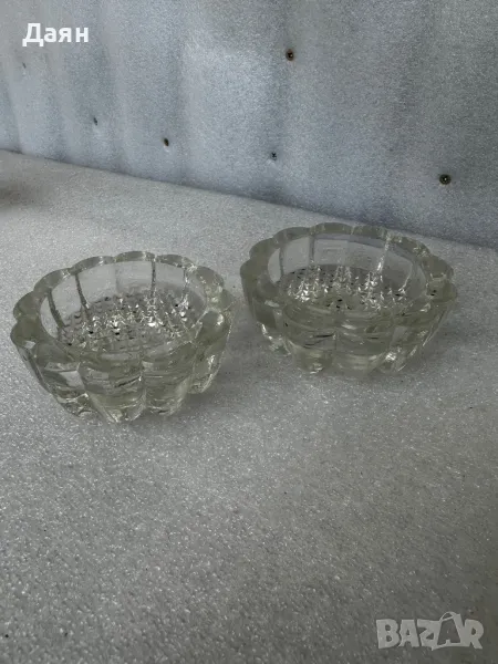 стъклени свещници и захарница с капак → Обява 49940679