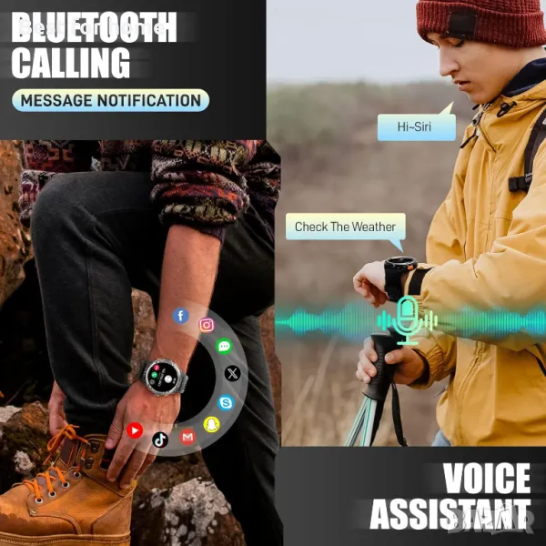 【Многофункционален асистент за живота】 - Здравият смарт часовник LaNikar с фенерче е оборудван с 1,45-инчов HD екран и 360 HD резолюция, което ви дава перфектно изживяване при работа. Мъжки военен смарт часовник LaNikar включва прогноза за времето, музика и фотография с дистанционно управление, хронометър, таймер, аларма, мобилно търсене, калкулатор и т.н., с повече от 200 циферблата за избор-най-добрият помощник за вашия интелигентен живот!