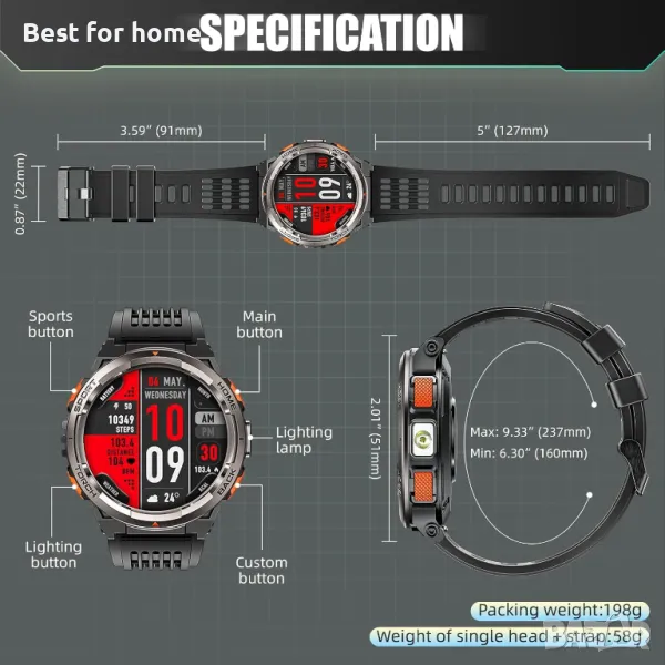 Специална функция измервател на разстояние, настройка на време, аларма, музикален плейър, монитор за сън, крачкомер, здравен монитор, калориен тракер, калкулатор, контролер на камерата, мулти-спорт тракер, телефонна функция, известия за съобщенияизмервател на разстояние, настройка на време, аларма, музикален плейър, монитор за сън, крачкомер, здравен монитор, проследяване на калории, калкулатор, контролер на камерата, мулти-спорт...