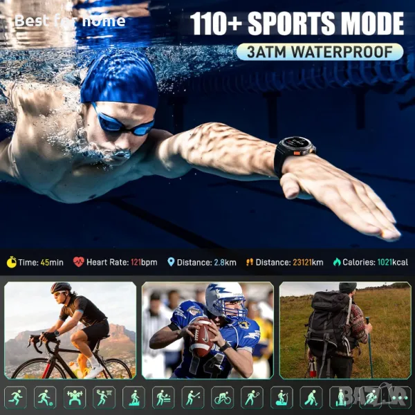 【Военен стандарт и водоустойчив 3ATM】 - Мъжкият военен смарт часовник е изработен от аерокосмически метал със стъклен панел с твърдост 9H, достатъчно издръжлив, за да издържи на екстремни среди и тестове. Здравият смарт часовник за мъже LaNikar премина множество военни тестове, включително екстремни температури, ниско налягане, устойчивост на прах и вода. В ежедневието можете да го носите и за плуване, гмуркане и други водни спортове!