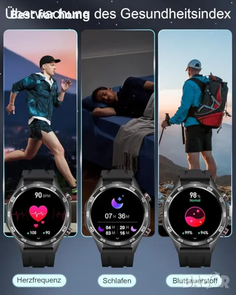 1,52-инчов HD сензорен екран и 300+ циферблата: Умният часовник разполага с 1,52-инчов HD сензорен дисплей за ясни и ярки изображения. Той предлага над 300 персонализирани циферблата, така че можете да коригирате външния вид според вашия стил или настроение