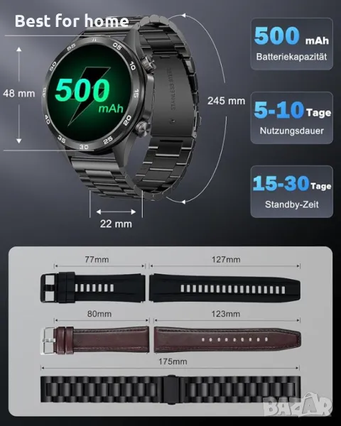 Функционален и издръжлив: Този смарт часовник е оборудван с многобройни функции като управление на музика, актуализации за времето, управление на камерата и др. Зареждане от 2-3 часа е достатъчно за 5-10 дни в употреба или 15-30 дни в режим на готовност