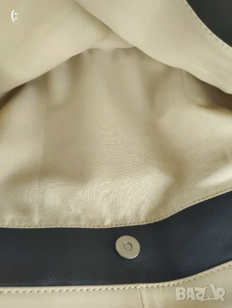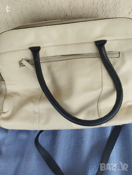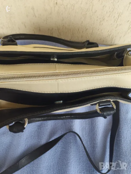 Чантата изработена от мека естествена кожа.Няма забележки,без петна или захабено.Буквално е като нова.Цвят шампанско.С дълга дръжка за носене през рамо.Размери:височина 24,ширина 40,дъното е 10см.С много място за носене на всичко необходимо.С три прегради,едната е с цип.Цена 80лв.Реалната цена на такава чанта е около 200-300лв.