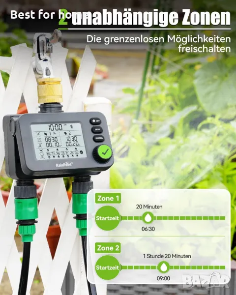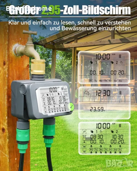 【Голям LCD дисплей】 Таймерът на крана разполага с 2,95-инчов лесен за четене LED дисплей, който показва времето за поливане, честотата на поливане, мощността и други подробности по удобен и лесен за четене начин.